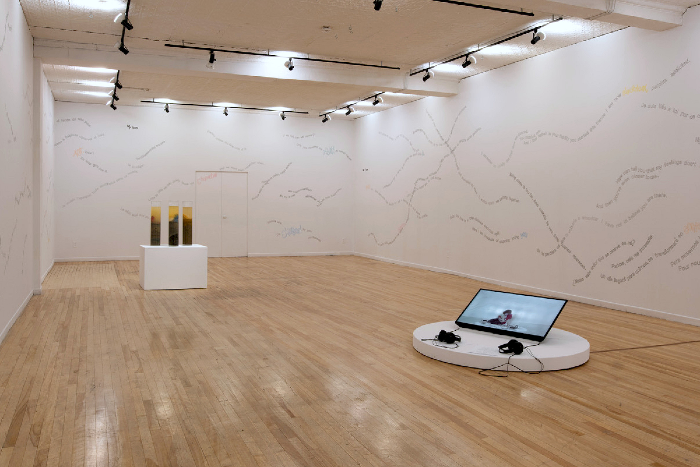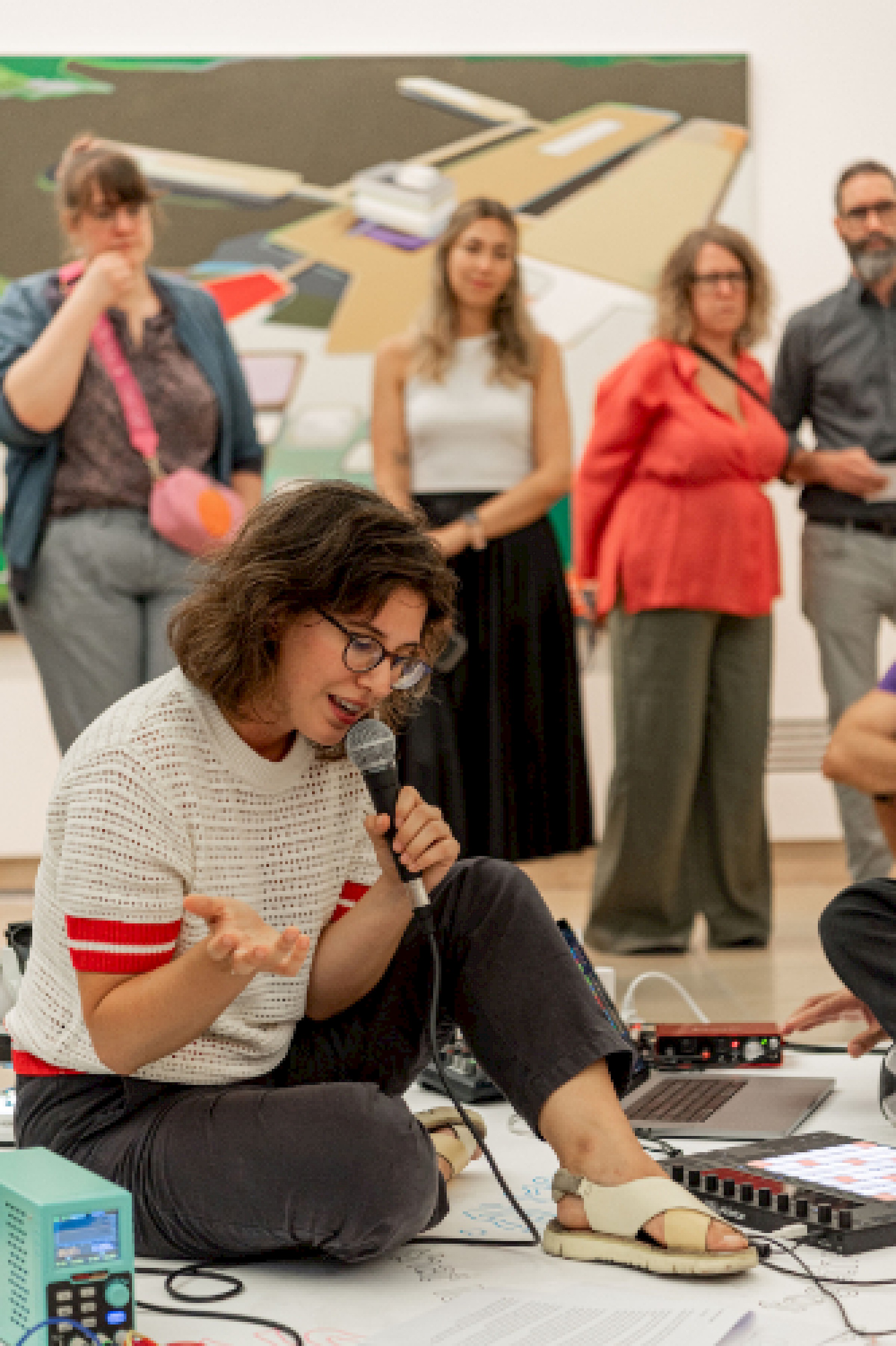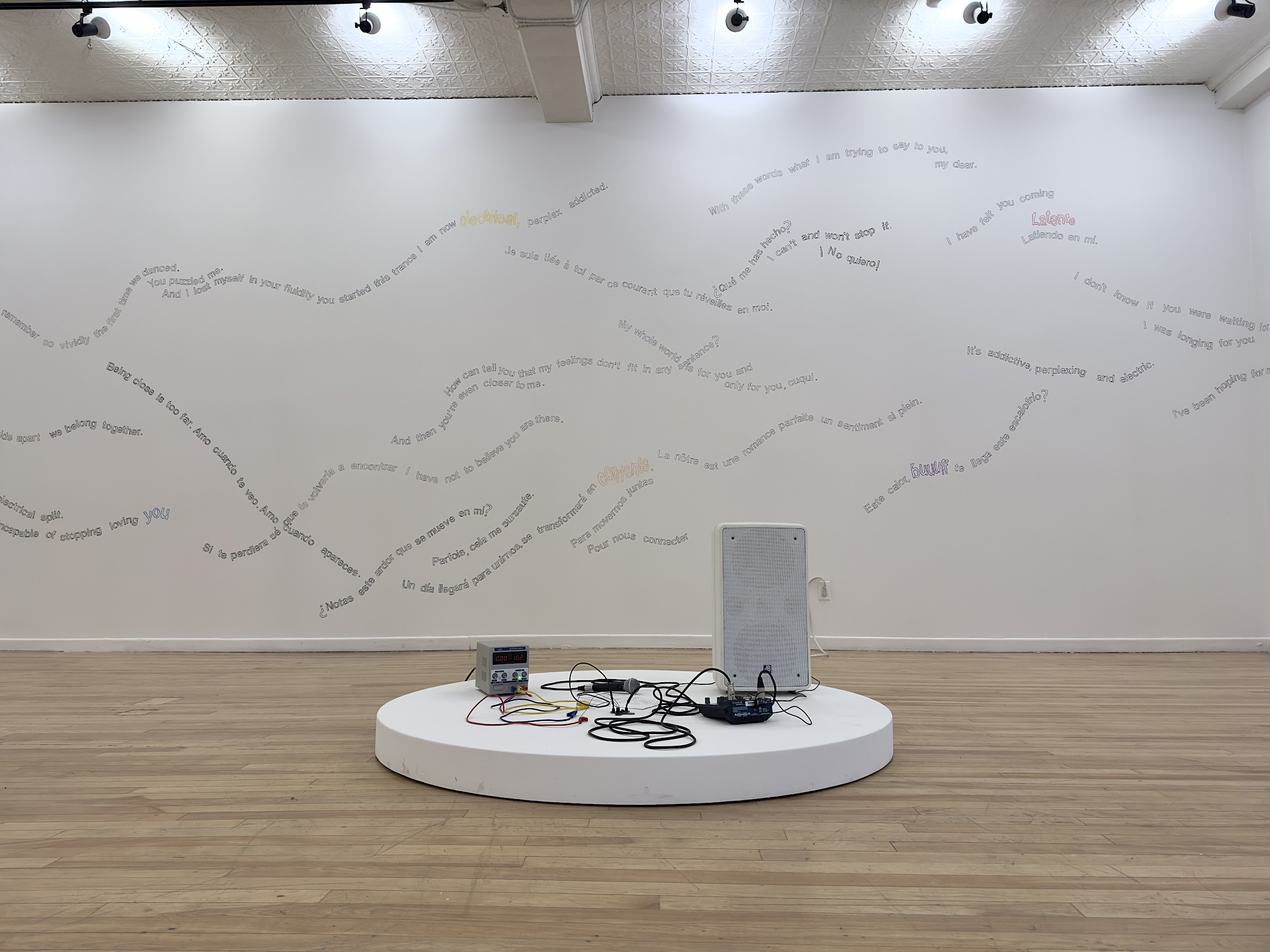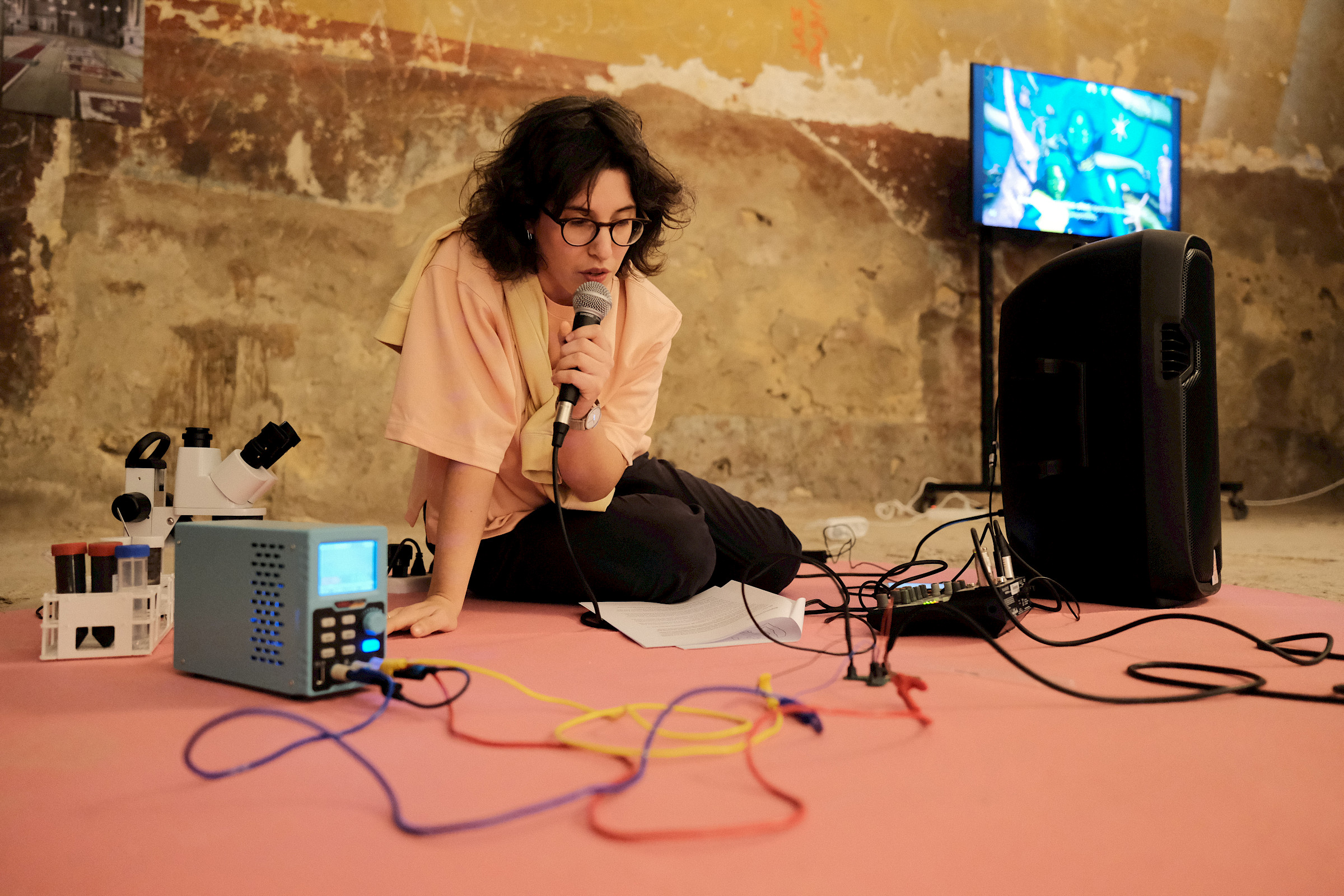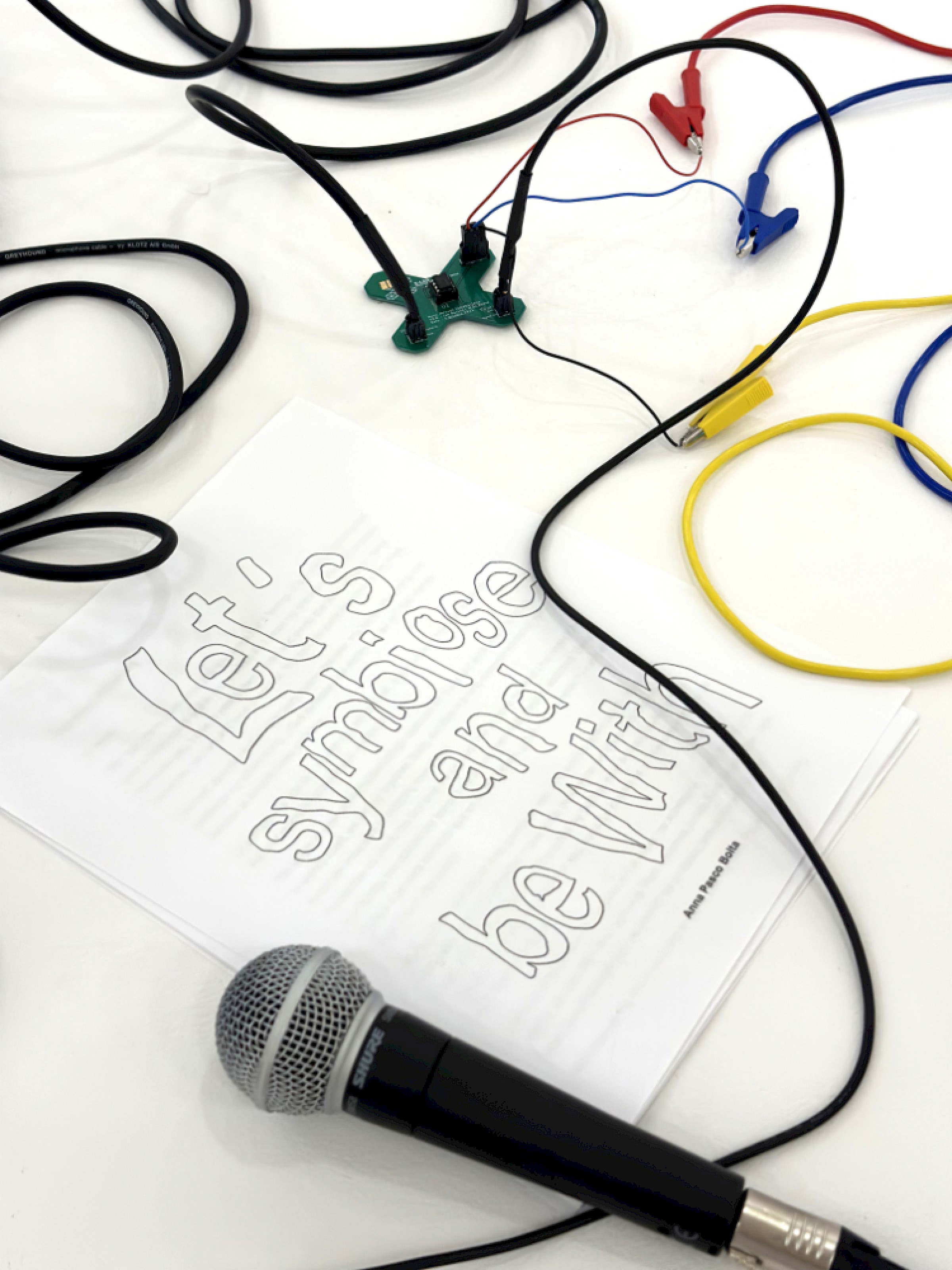 Let's Symbiose and Be With is an installation and performance with cable bacteria, which are capable of transmitting electricity and have revolutionized the conception of the origin of life because until now the conductive capacity of bacteria was not considered. The work consist of a series of love letter addressed to and transmitted by the cable bacteria, so the audio signal of the microphone is conducted through the bacteria until it reaches the speakers.