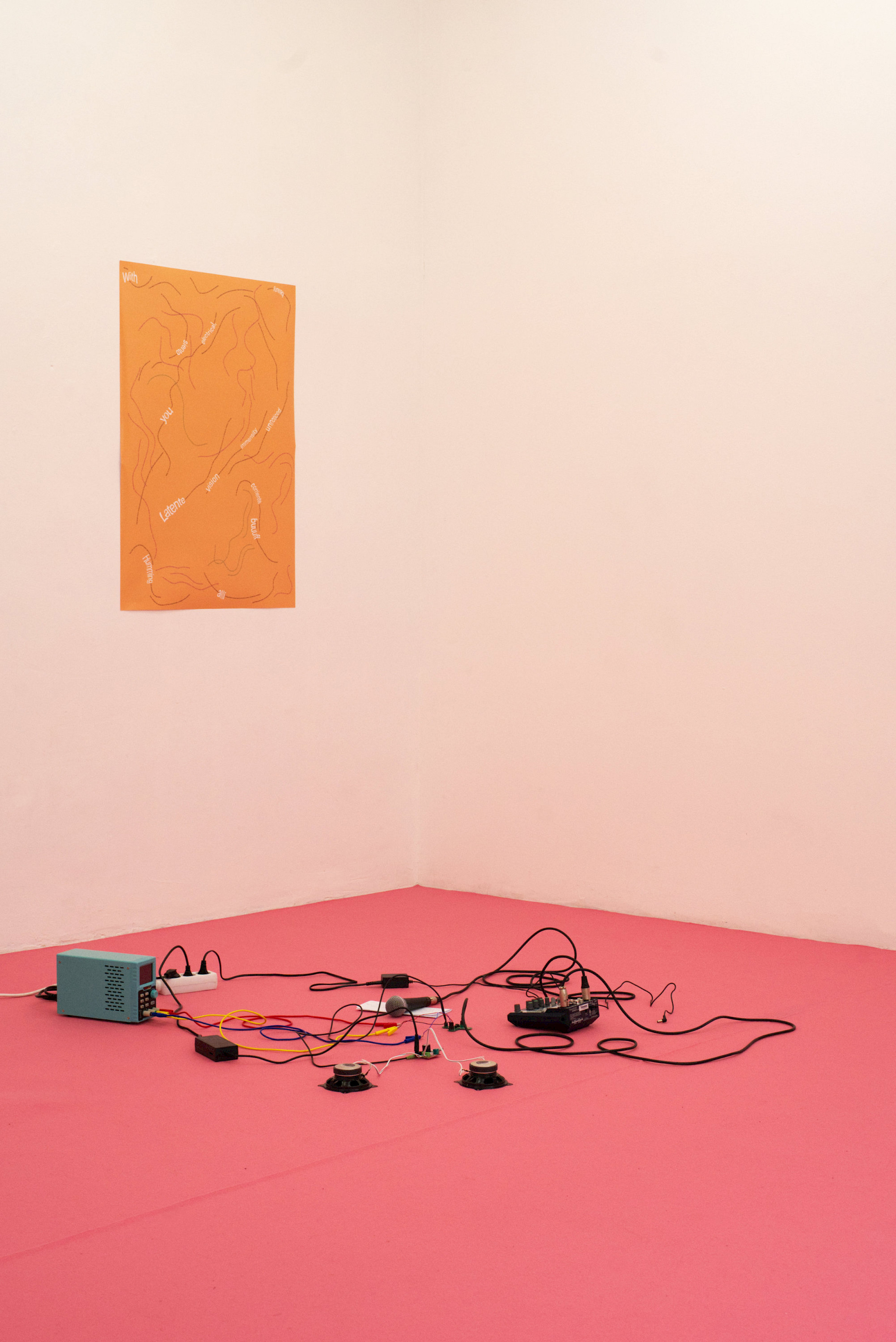 Let's Symbiose and Be With is an installation and performance with cable bacteria, which are capable of transmitting electricity and have revolutionized the conception of the origin of life because until now the conductive capacity of bacteria was not considered. The work consist of a series of love letter addressed to and transmitted by the cable bacteria, so the audio signal of the microphone is conducted through the bacteria until it reaches the speakers.