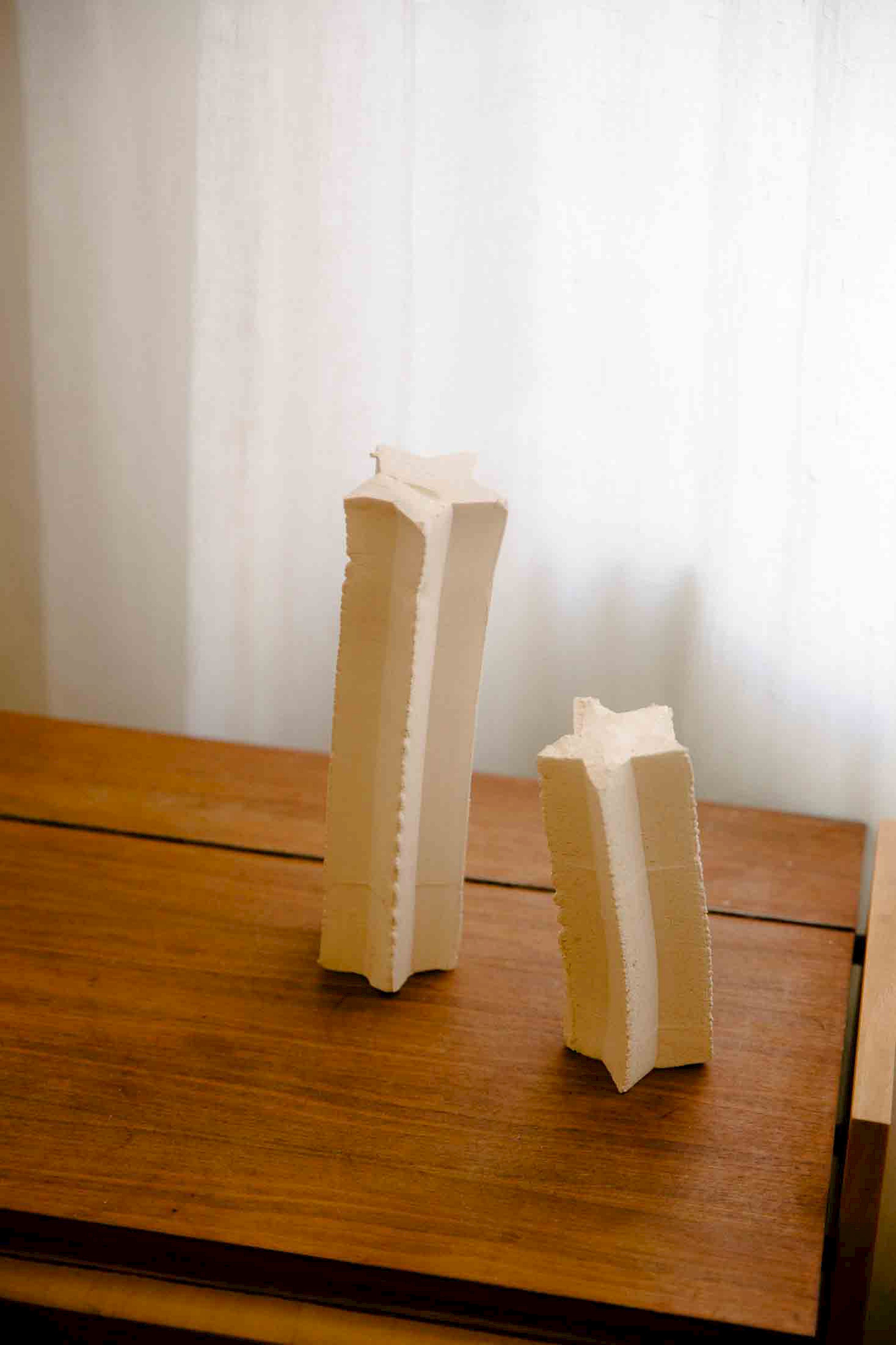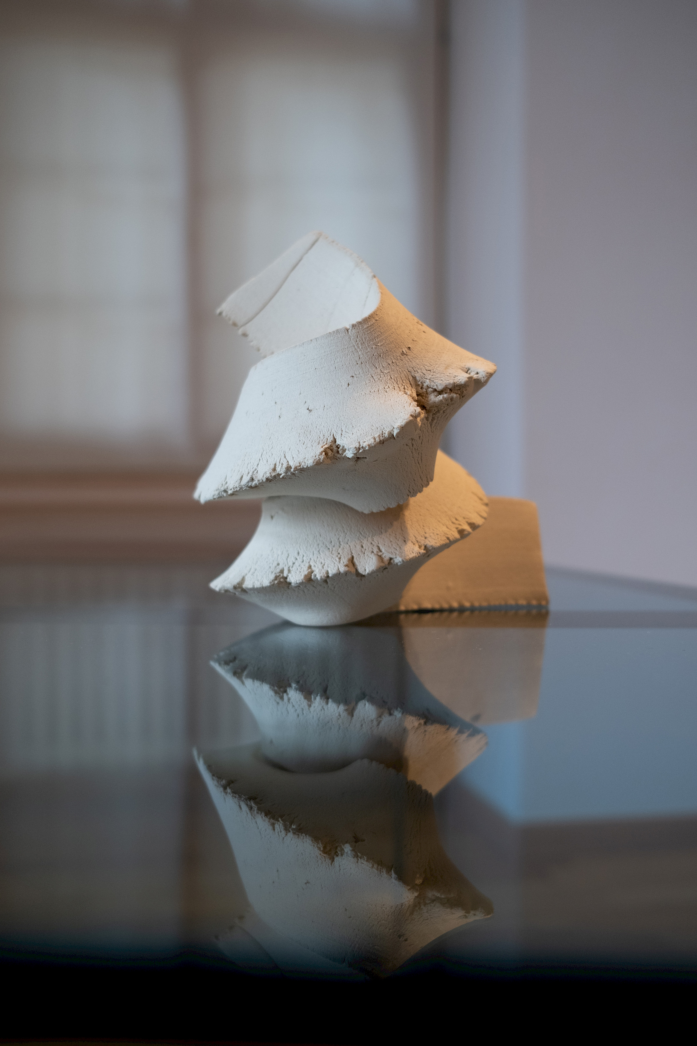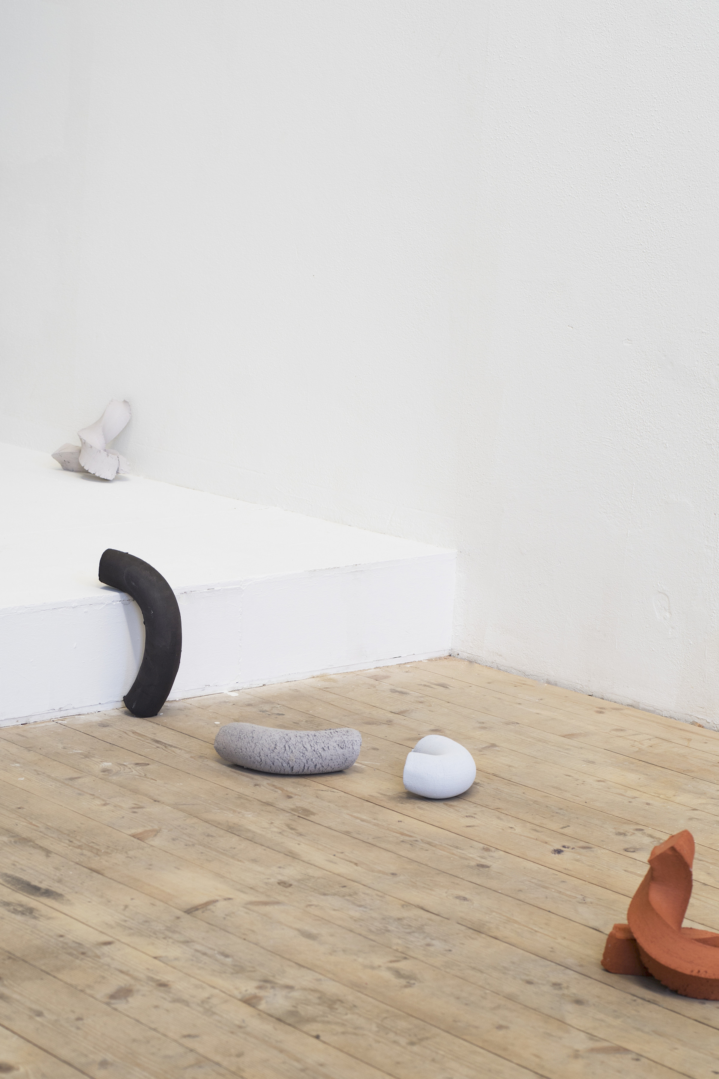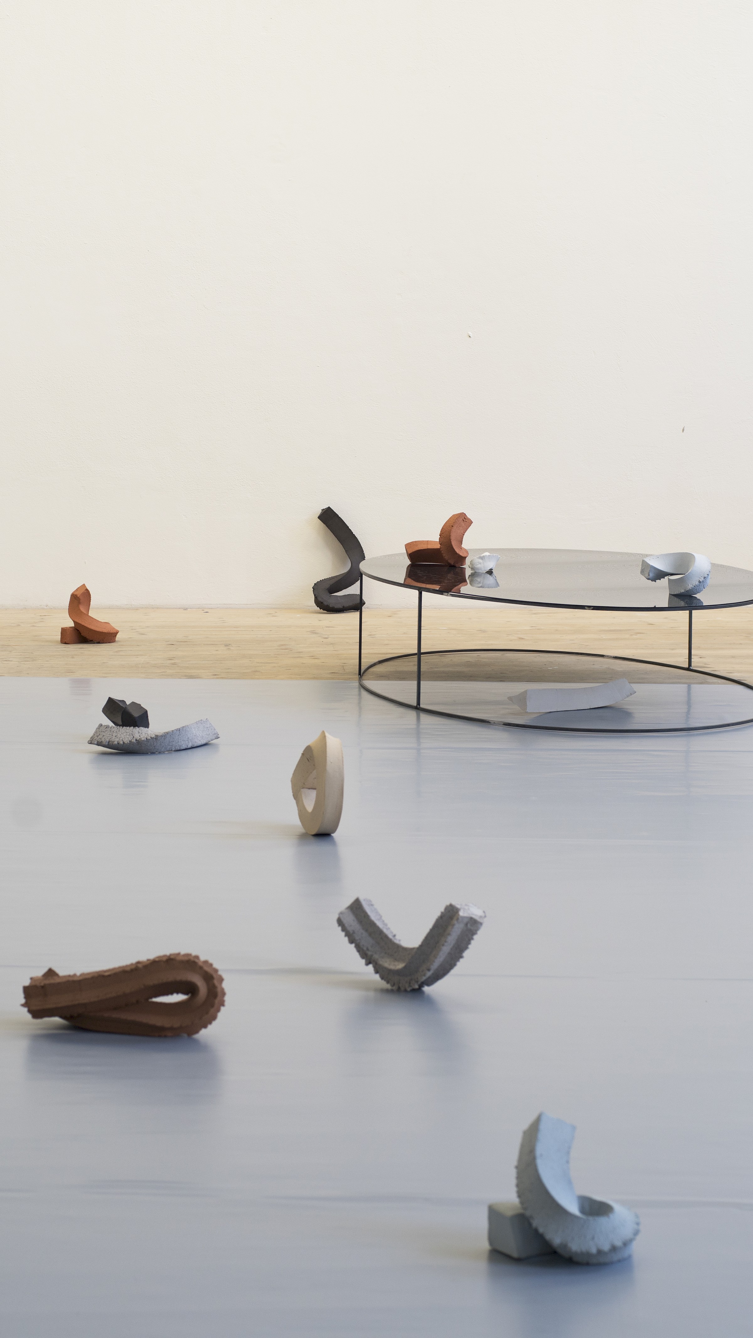 Modelle für eine Beseelung is about the relation we build to the objects around us and the degree of animation we project into them in order to identify with them. The three-dimensional objects get their shape by pressing different earth substrates through two-dimensional templates. The different colours of the models stem from the earth substrates being used.
