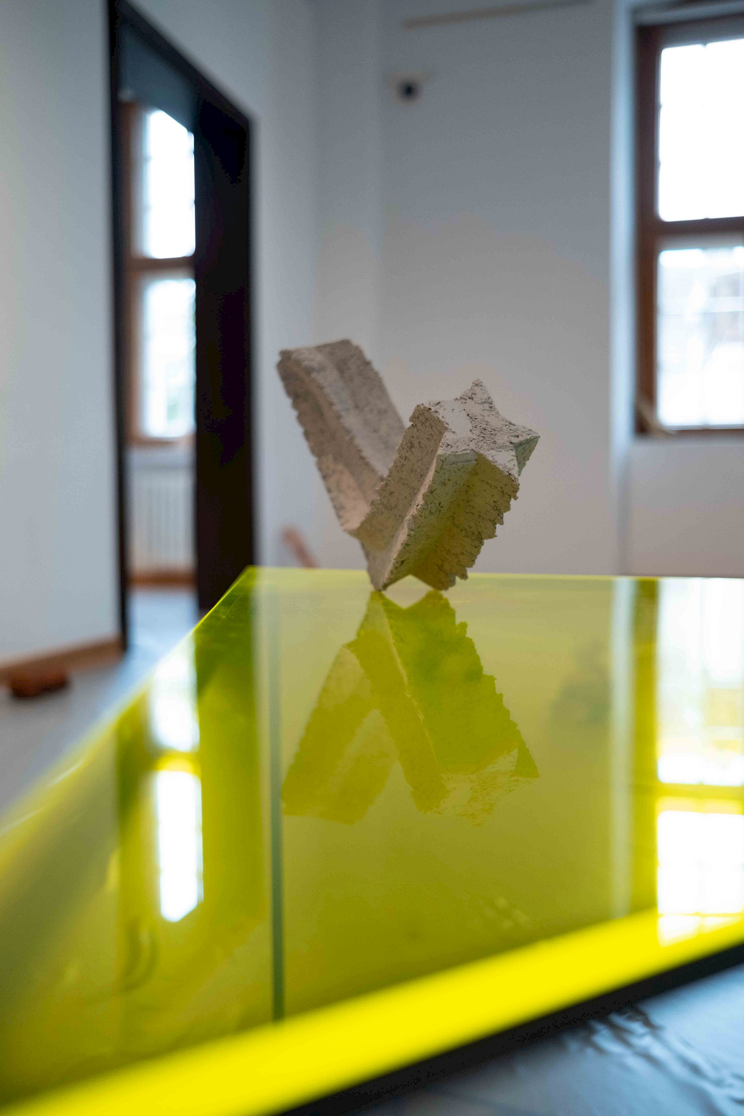 Ceramics, metal, plexiglas and plastic carpet, 2019