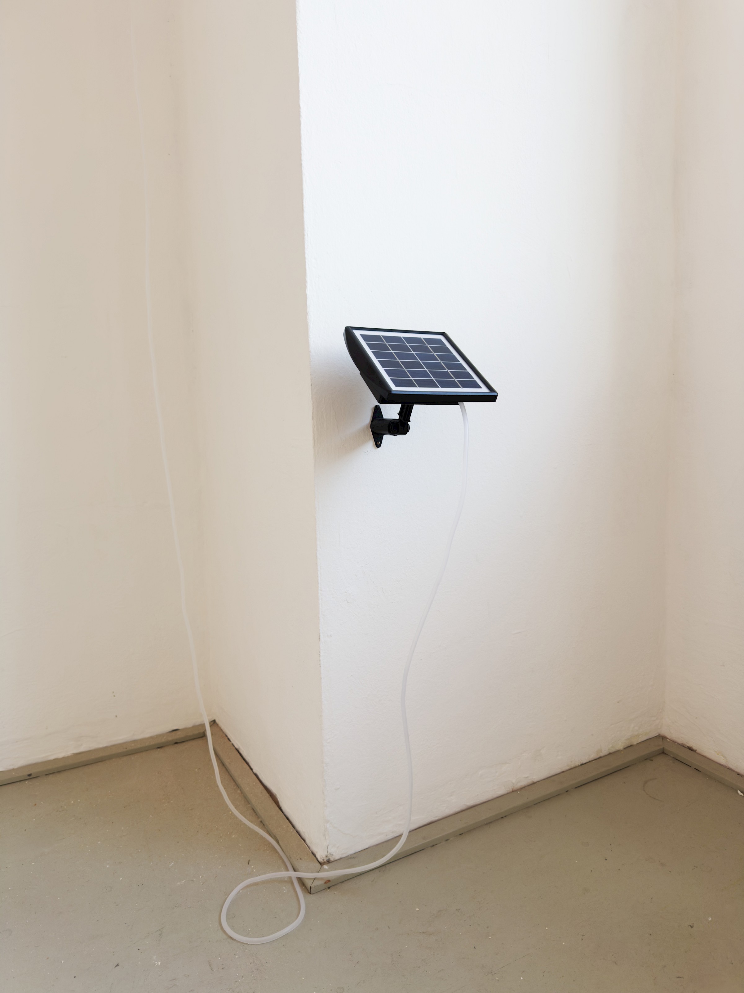 The work explores an intimate and porous relationship between inside and outside, between matter and breath, between the most remote and the essential. What does it mean to breathe something that has lingered in darkness for millions of years? What memory does a particle carry as it passes through a body?